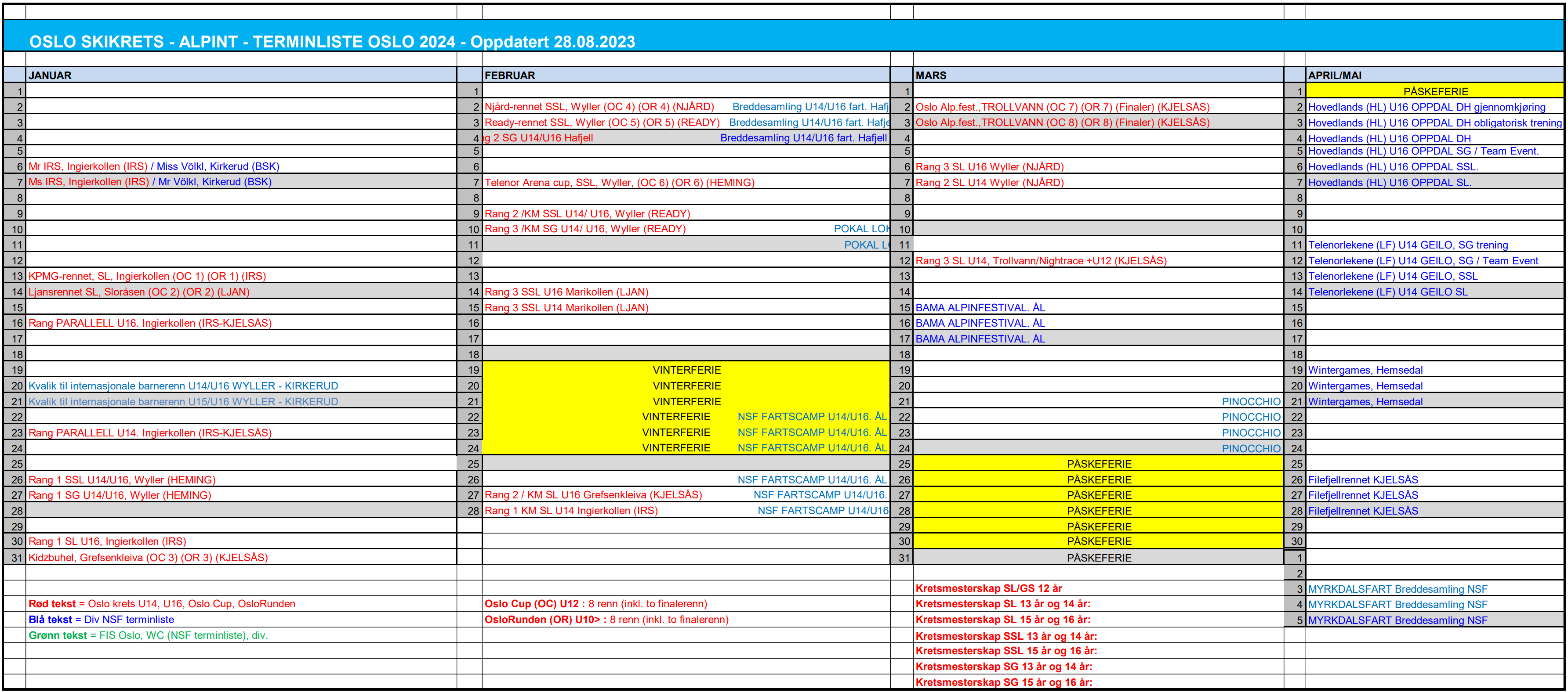 Mer informasjon om renn og påmelding vil bli lagt ut på spond i de ulike gruppene